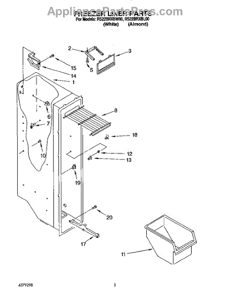 Parts for Roper RS22BRXBL00: 04 - Freezer Liner Parts