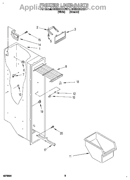 Parts for Roper RS22BRXBW01: 04 - Freezer Liner Parts