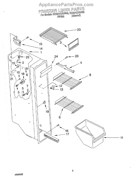 Parts for Roper RS25AQXGN00: 04 - Freezer Liner Parts