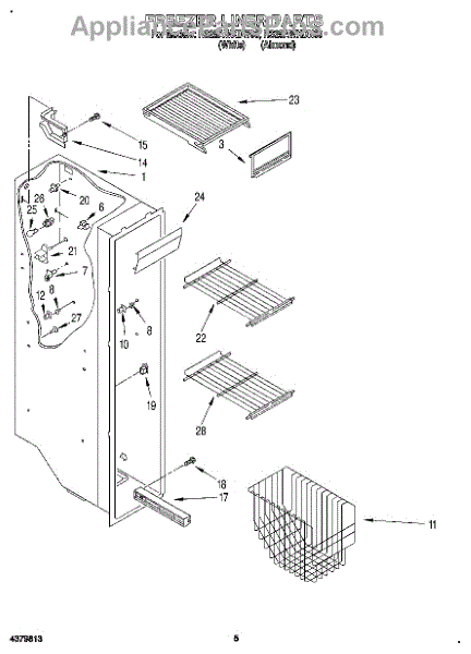 Parts for Roper RS25AWXDW00: 04 - Freezer Liner Parts