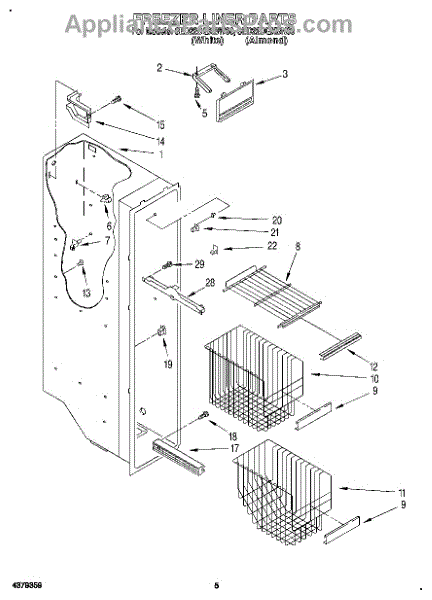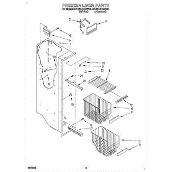 Parts for Whirlpool 3ED22DQXBW00: 04 - Freezer Liner Parts
