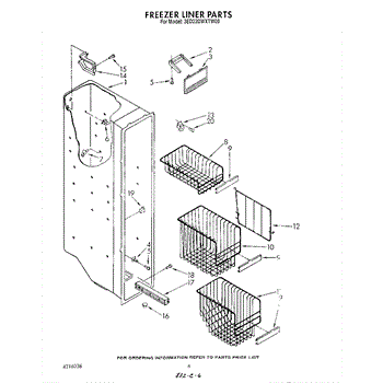 Parts for Whirlpool 3ED22DWXTW00: 05 - Freezer Liner Parts