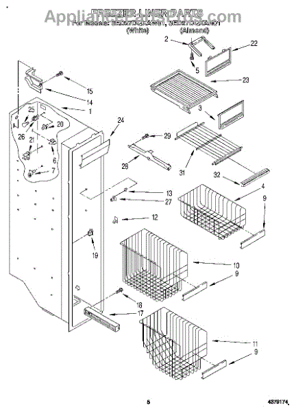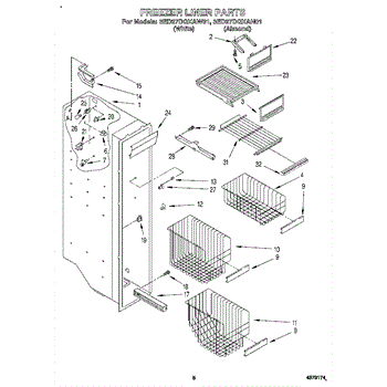 Parts for Whirlpool 3ED27DQXAN01: 04 - Freezer Liner Parts