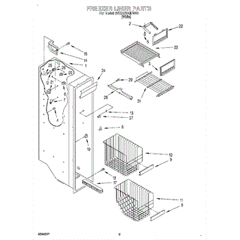 Parts for Whirlpool 3VED27DQDW00: 04 - Freezer Liner Parts