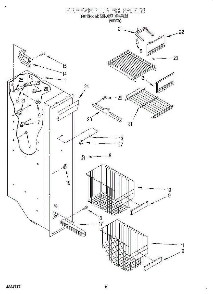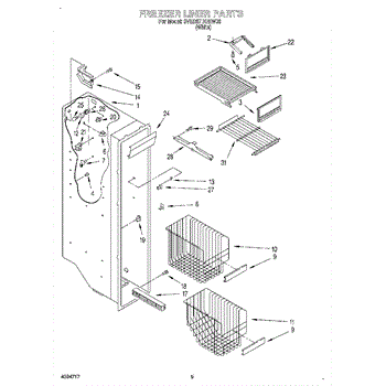 Parts for Whirlpool 3VED27DQEW00: 04 - Freezer Liner Parts