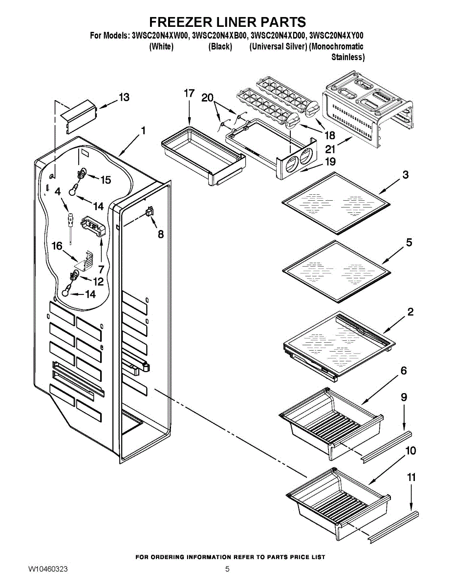 Parts for Whirlpool 3WSC20N4XW00: 04 - Freezer Liner Parts