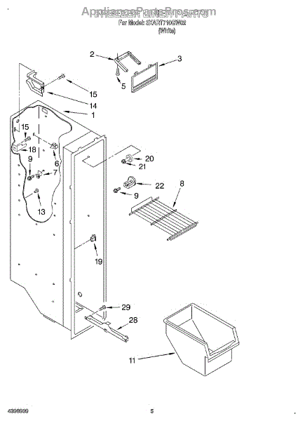 This factory screw secures appliance components to their mounting points. Replace missing, worn, or stripped hardware to restore a tight fit, proper alignment, and quieter operation across the affected assembly.