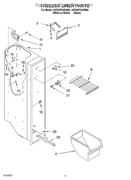 Parts for Whirlpool 3XED0FHQKB00: 03 - Freezer Liner Parts
