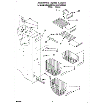 Parts for Whirlpool 4ED27DQXBW00: 04 - Freezer Liner Parts