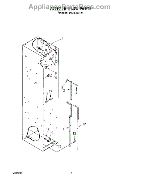 This screw is used to secure the handle end cap to the center of the door. The screw size measures 8-18 x 1/2 inches.