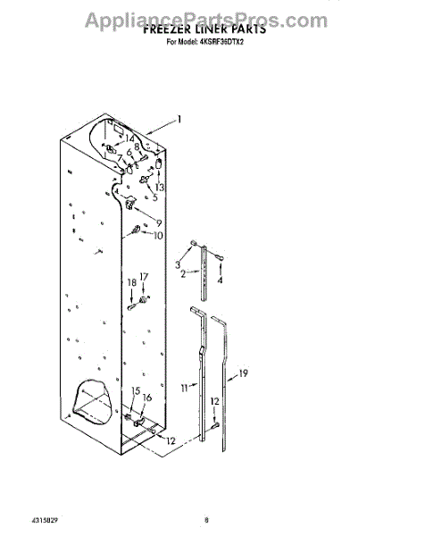 This screw is used to secure the handle end cap to the center of the door. The screw size measures 8-18 x 1/2 inches.