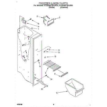 Parts for Whirlpool 4YED22PWAN00: 04 - Freezer Liner Parts