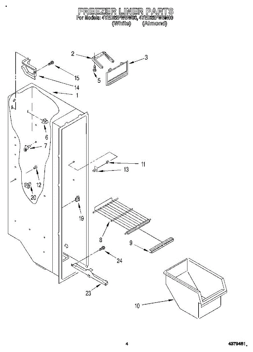 Parts for Whirlpool 4YED22PWBW00: 03 - Freezer Liner Parts