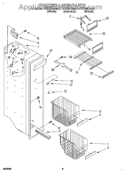 Parts for Whirlpool 4YED25DQAN01: 04 - Freezer Liner Parts