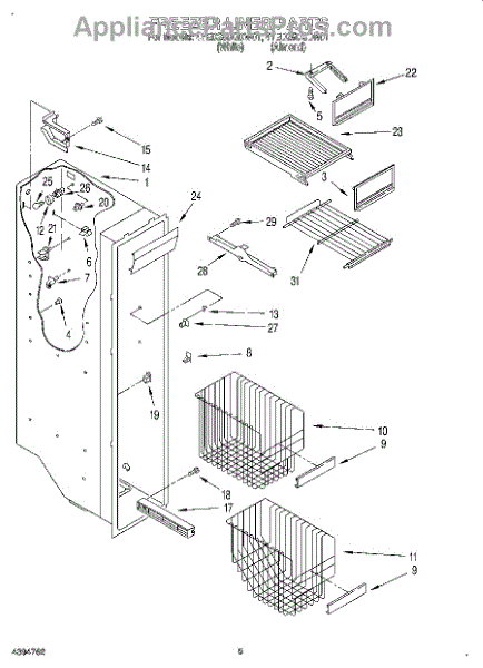 Parts for Whirlpool 4YED25DQDW01: 04 - Freezer Liner Parts