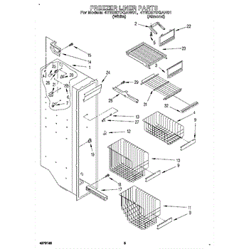 Parts for Whirlpool 4YED27DQAW01: 04 - Freezer Liner Parts