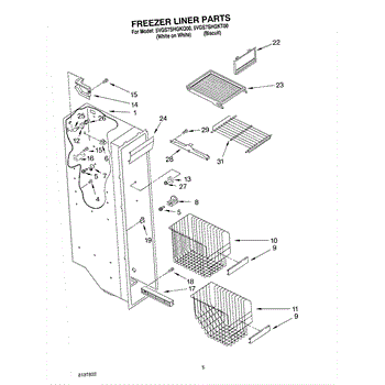 Parts for Whirlpool 5VGS7SHGKT00: 04 - Freezer Liner Parts