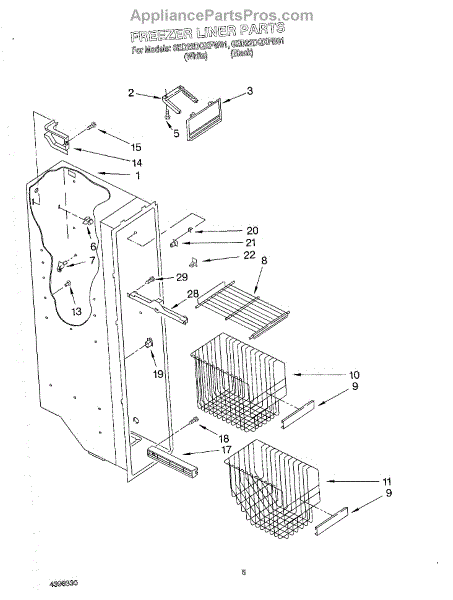 Parts for Whirlpool 6ED22DQXFB01: 04 - Freezer Liner Parts