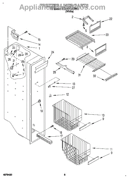 Parts for Whirlpool 6ED25DQXBN00: 04 - Freezer Liner Parts