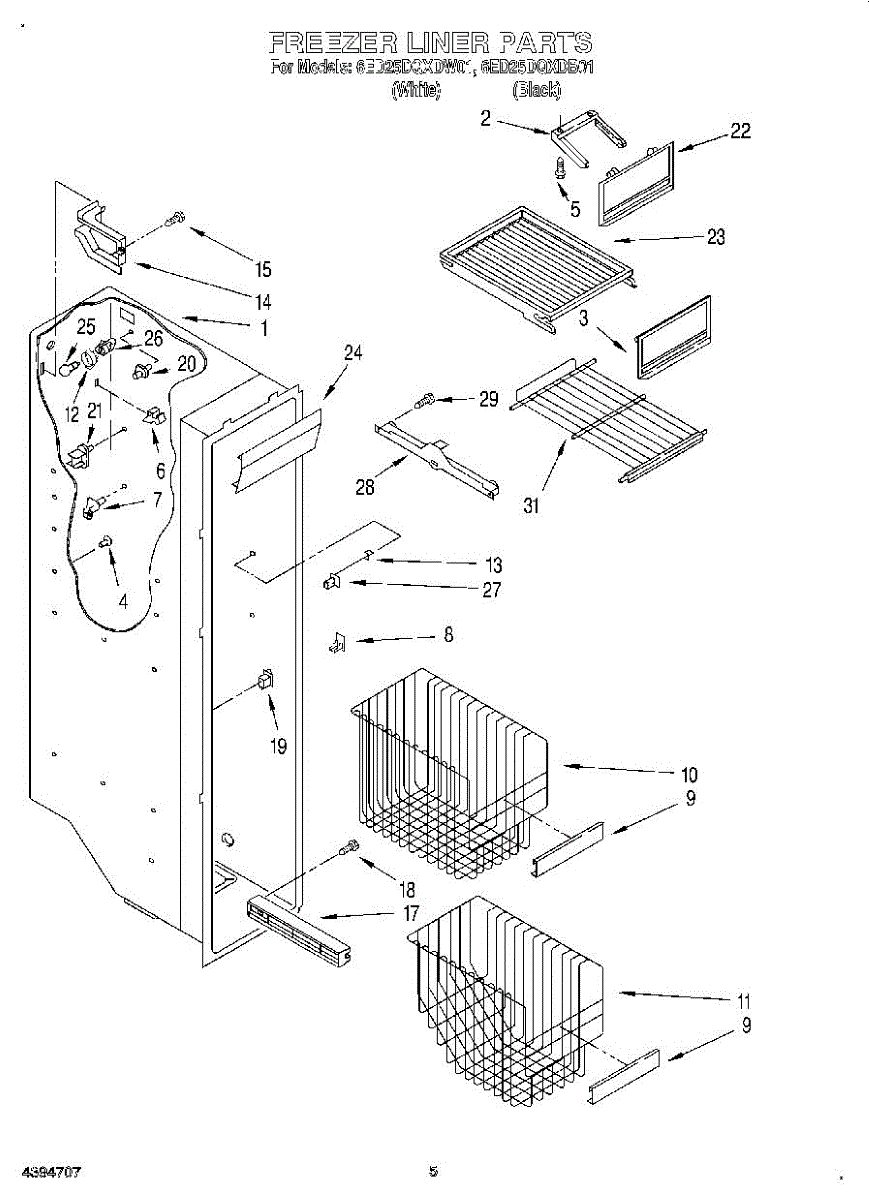 Parts for Whirlpool 6ED25DQXDW01: 04 - Freezer Liner Parts