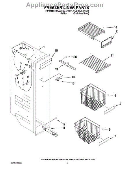 Parts for Whirlpool 6GD25DCXHW11: 04 - Freezer Liner Parts