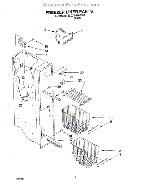 This factory screw secures appliance components to their mounting points. Replace missing, worn, or stripped hardware to restore a tight fit, proper alignment, and quieter operation across the affected assembly.