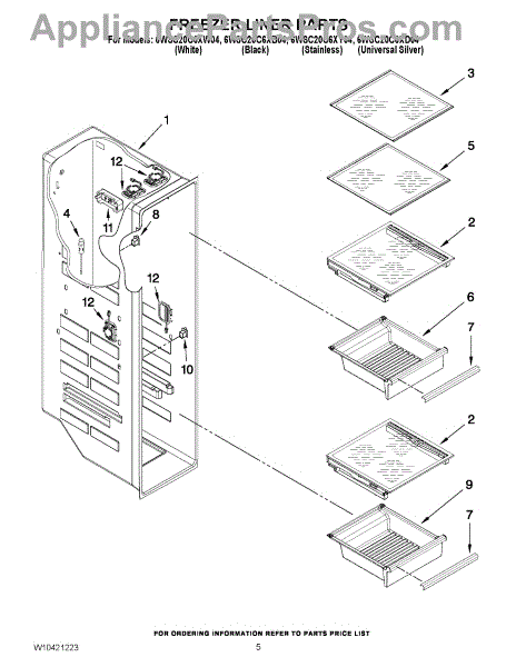 Parts for Whirlpool 6WSC20C6XD04: 04 - Freezer Liner Parts