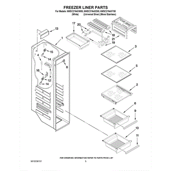 Parts for Whirlpool 6WSC21N4XW00: 04 - Freezer Liner Parts