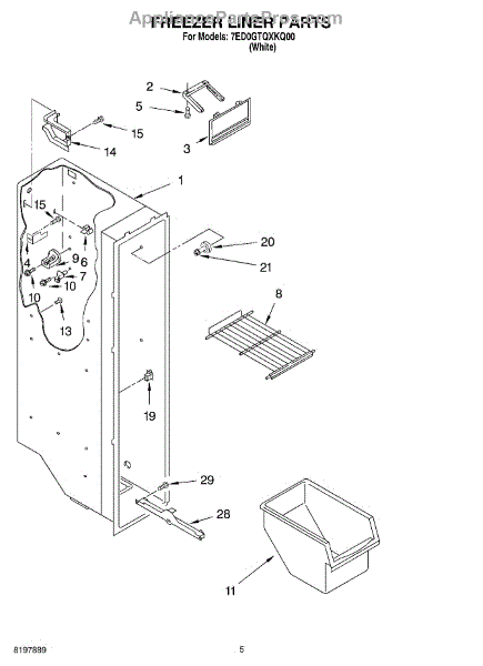 Parts for Whirlpool 7ED0GTQXKQ00: 03 - Freezer Liner Parts