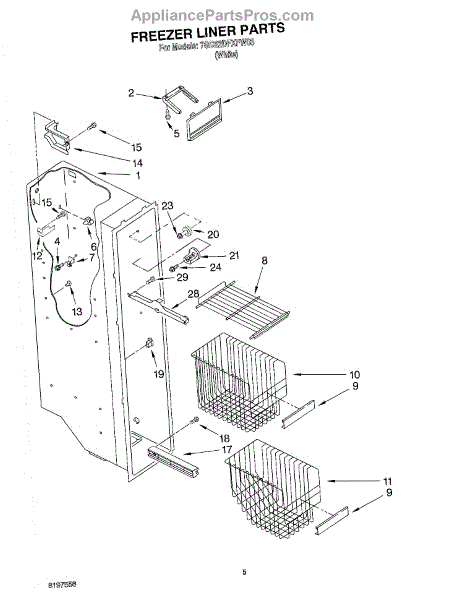 Parts for Whirlpool 7GD22DFXFW03: 04 - Freezer Liner Parts
