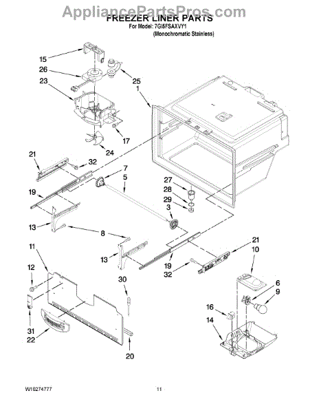 Parts for Whirlpool 7GI5FSAXVY1: 06 - Freezer Liner Parts