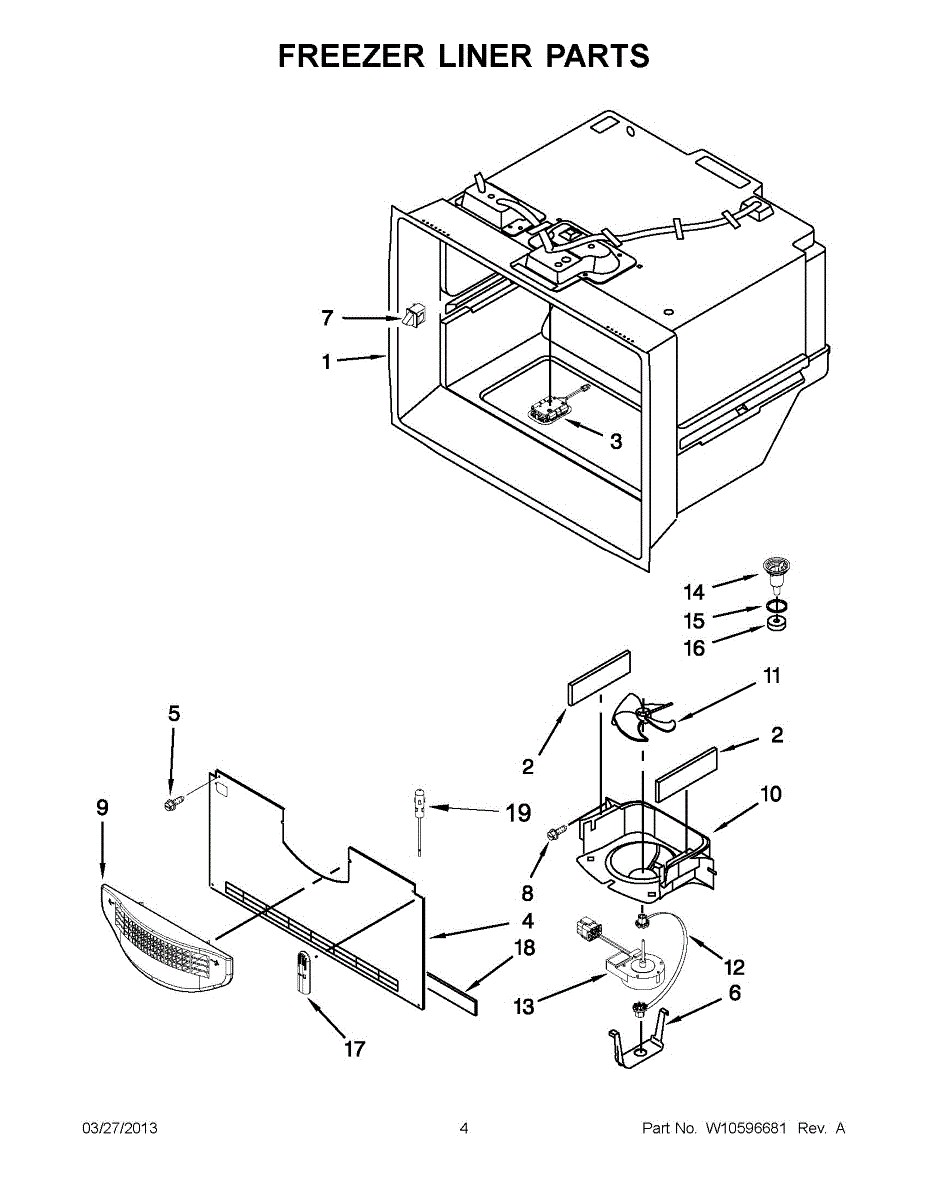 Parts for Whirlpool 7WF736SDAM10: 02 - Freezer Liner Parts