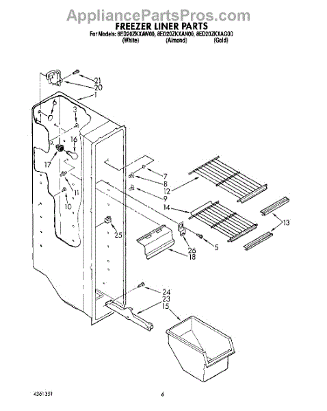 Parts for Whirlpool 8ED20ZKXAN00: 04 - Freezer Liner Parts
