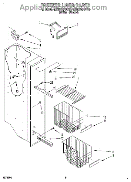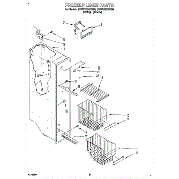 Parts for Whirlpool 8ED22DQXDW00: 04 - Freezer Liner Parts