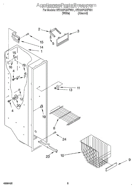 Parts for Whirlpool 8ED22PQXFN01: 04 - Freezer Liner Parts