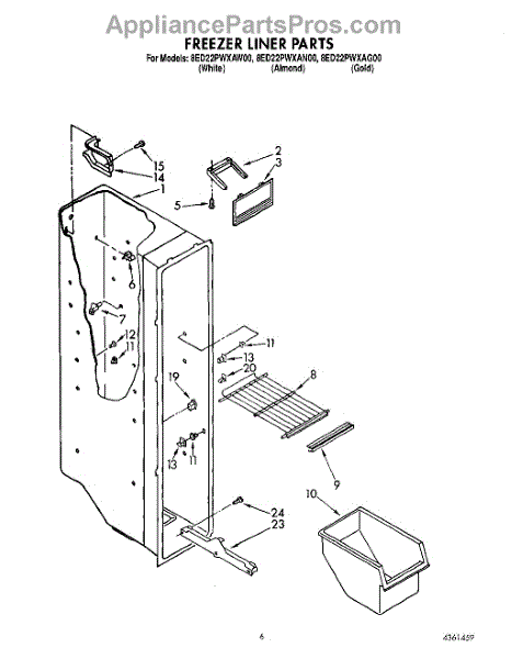 Parts for Whirlpool 8ED22PWXAG00: 04 - Freezer Liner Parts