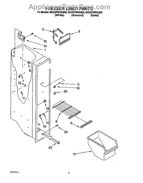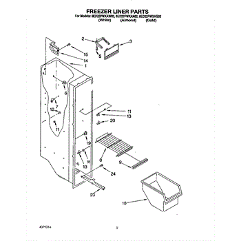 Parts for Whirlpool 8ED22PWXAW02: 04 - Freezer Liner Parts