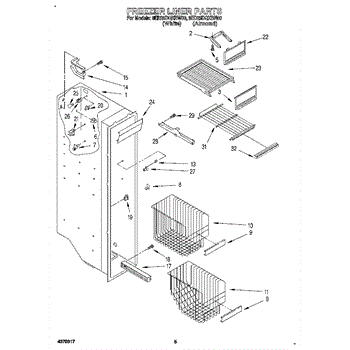 Parts for Whirlpool 8ED25DQXBN00: 04 - Freezer Liner Parts