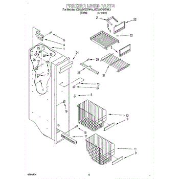 Parts for Whirlpool 8ED25DQXDW03: 04 - Freezer Liner Parts