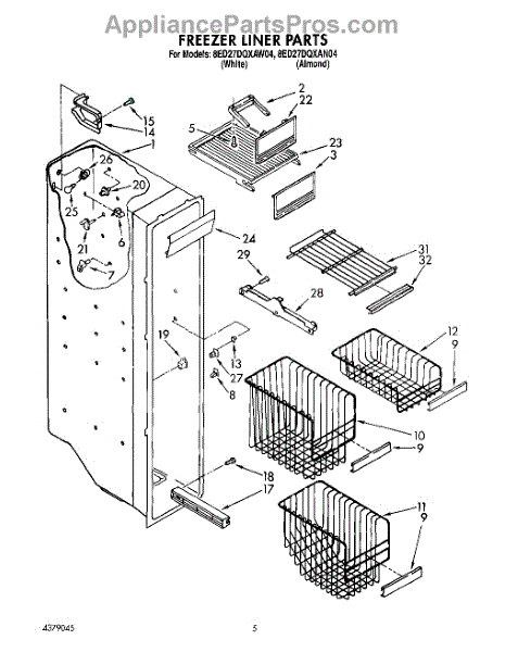 Parts for Whirlpool 8ED27DQXAW04: 04 - Freezer Liner Parts
