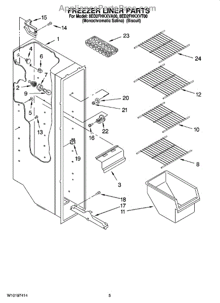 This freezer bin replaces a cracked or missing bin to restore organized storage in your freezer. It mounts on existing tabs or rails to keep frozen items secure and easy to access.