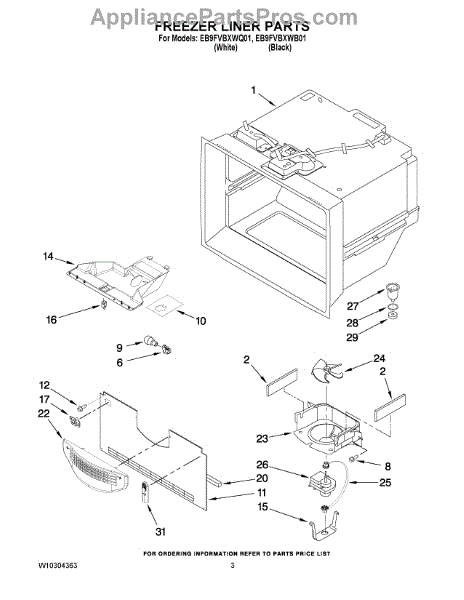 Parts for Whirlpool EB9FVBXWQ01: 02 - Freezer Liner Parts