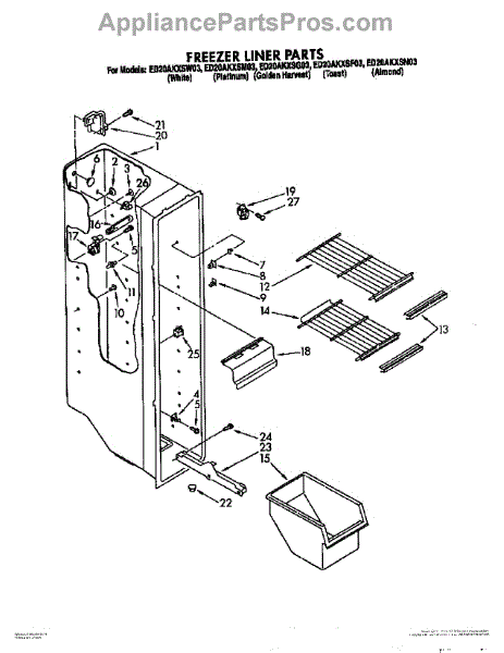 Parts for Whirlpool ED20AKXSW03: 04 - Freezer Liner Parts