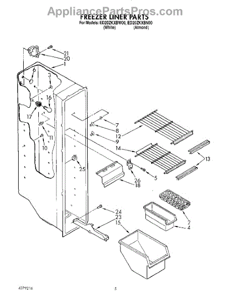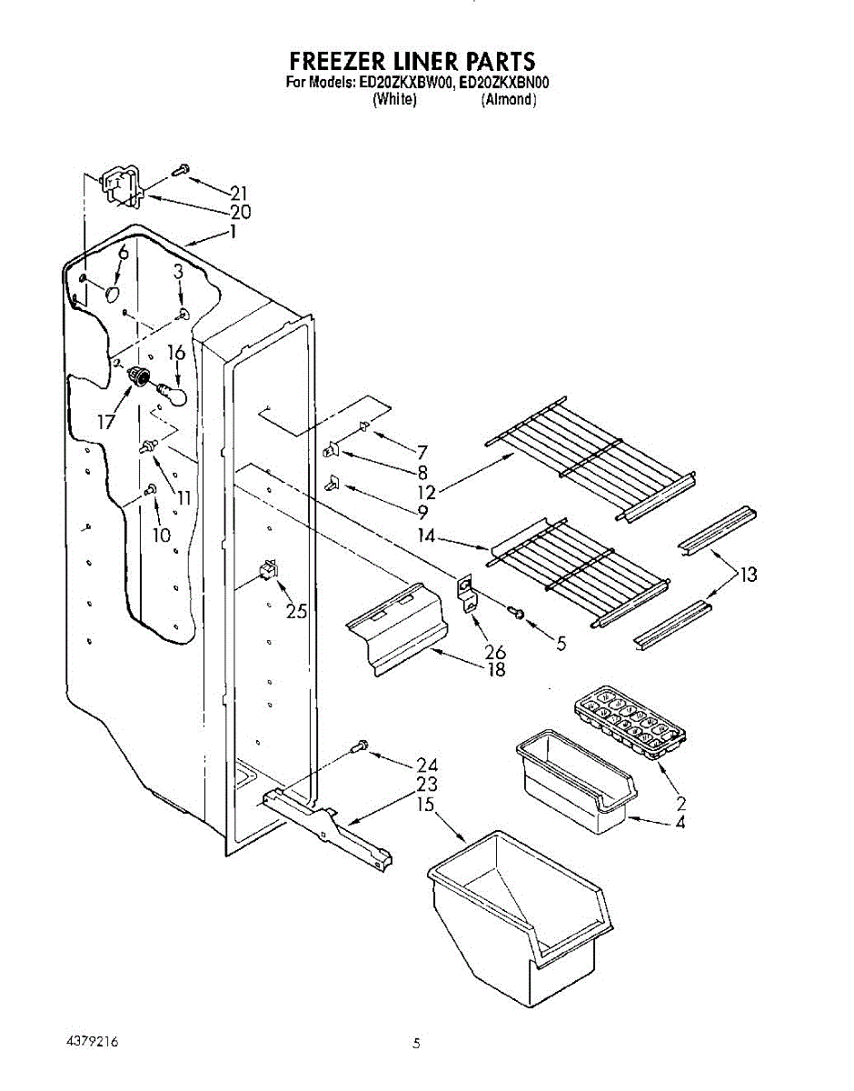 Parts for Whirlpool ED20ZKXBW00: 03 - Freezer Liner Parts