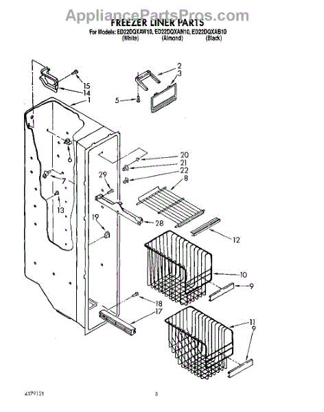 Parts for Whirlpool ED22DQXAW10: 04 - Freezer Liner Parts