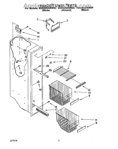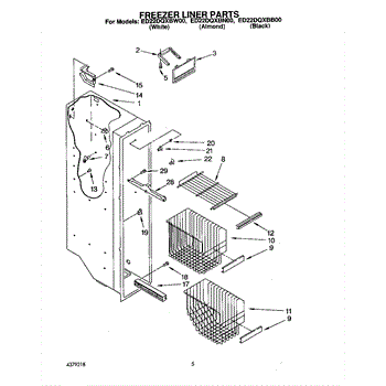 Parts for Whirlpool ED22DQXBN00: 04 - Freezer Liner Parts