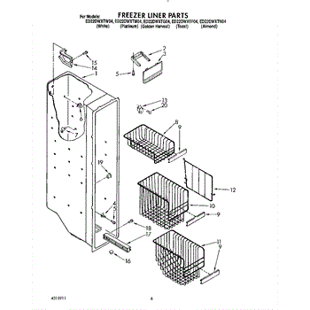 Parts for Whirlpool ED22DWXTW04: 05 - Freezer Liner Parts