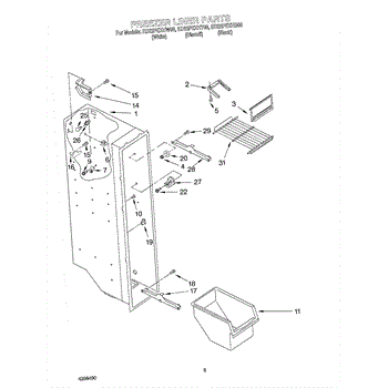 Parts for Whirlpool ED22PEXHW00: 04 - Freezer Liner Parts