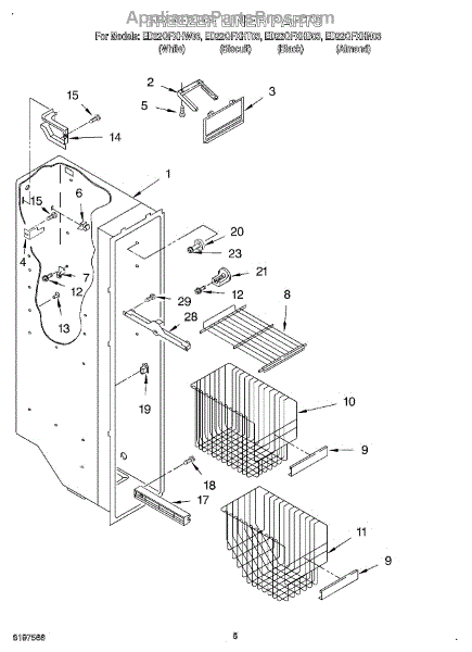 Parts for Whirlpool ED22QFXHB03: 04 - Freezer Liner Parts