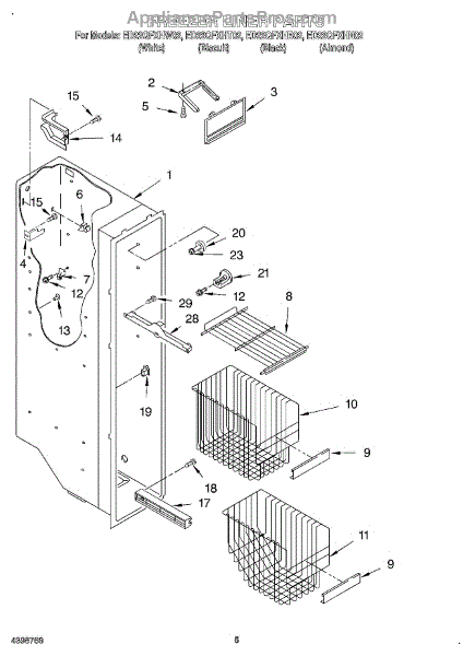 Parts for Whirlpool ED22QFXHW02: 04 - Freezer Liner Parts
